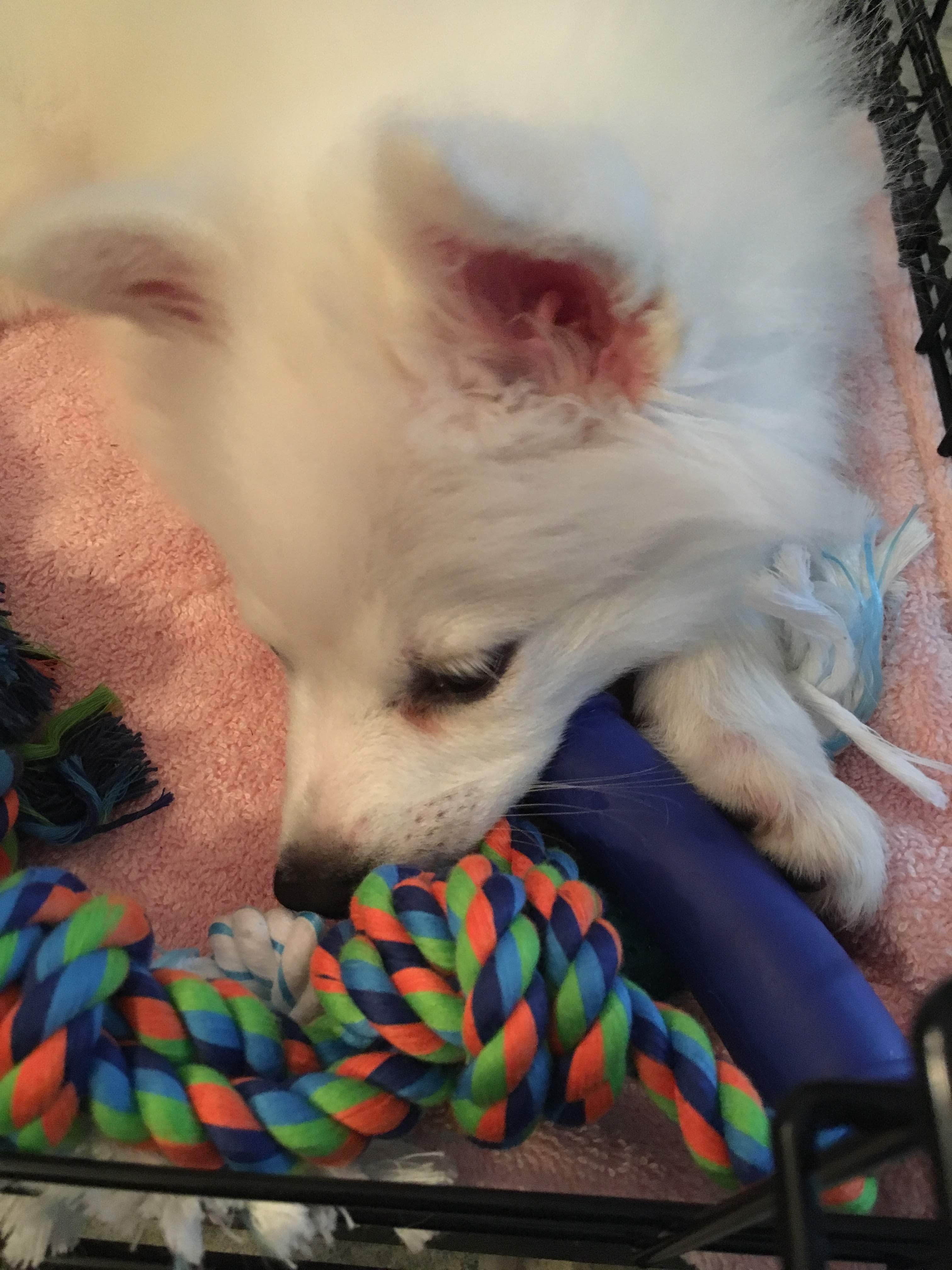 Taylor is the fuzziest companion that I have right now. I’ve never known another dog with as much love to give as this little marshmallow! She has some gastrointestinal struggles that we’ve had to navigate, but she’s healthy as a horse beyond that. She’s incredibly energetic and intelligent. Since we can’t give her many treats without upsetting her tummy we make sure to spoil her with LOTS of toys. She loves to learn, so I hope to really ramp up the training I do with her. My ultimate dream is to do agility competitions with her.
